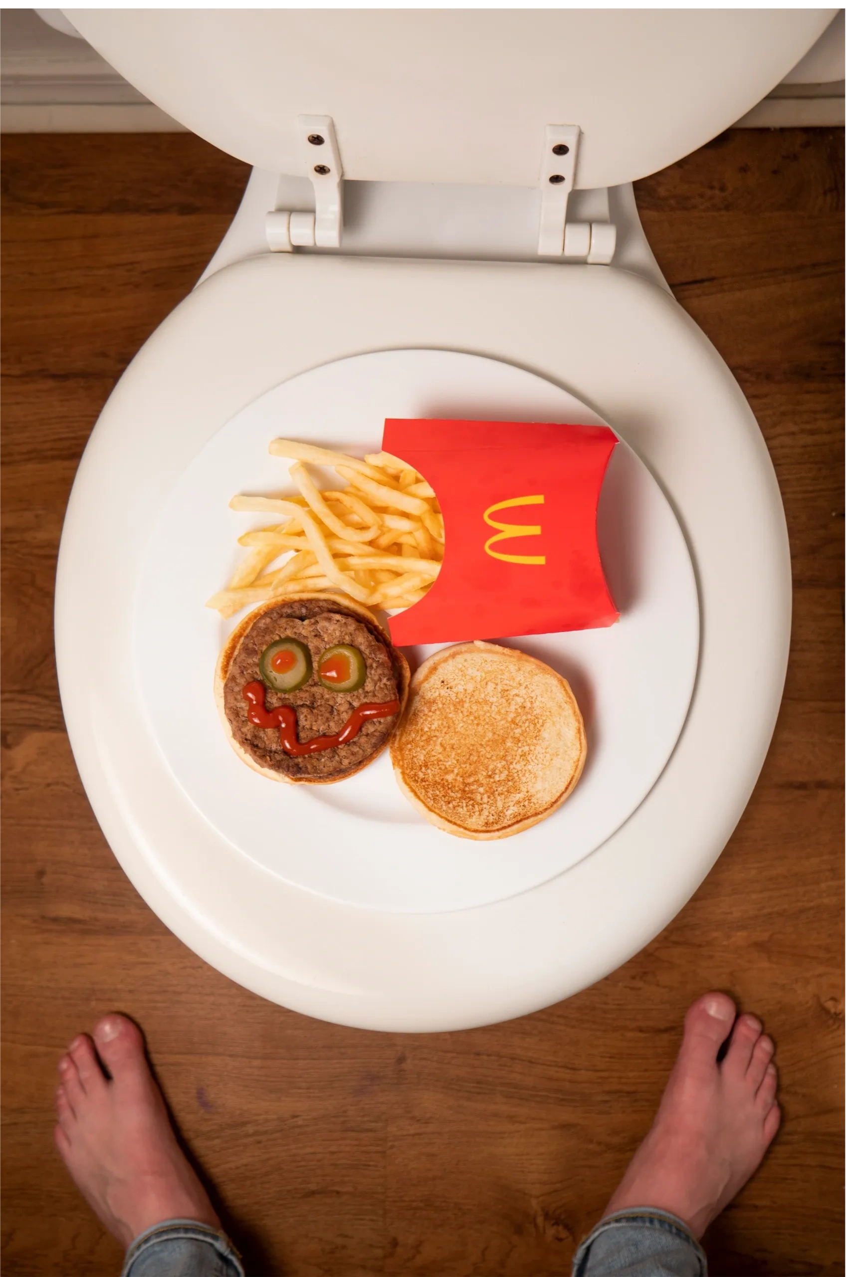 In the specific case of McDonald's and most other fast food restaurants, preservatives are one of many issues; There are so many preservatives packed into a McDonald's "meal," that your body quite literally doesn't have enough time to break down all of the food molecules before it completely passes through your digestive system.
